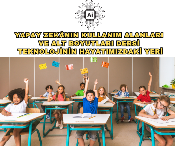 yapay zekâ kullanım alanları, yapay zekâ alt boyutları, MEB yapay zekâ, ortaokul müfredatı, üretken yapay zekâ, makine öğrenmesi, doğal dil işleme, görüntü işleme, özel gereksinimli bireyler, yaşlılar için yapay zekâ, algoritmik düşünme, etik ilkeler, bilişim güvenliği, kişisel veri güvenliği, bilimsel süreç becerileri, yaşam becerileri, mühendislik becerileri, Türkiye Yeterlilikler Çerçevesi, yapay zekâ uygulamaları, iş birlikli çalışma, teknoloji eğitimi, veri madenciliği, sorgulama becerileri
